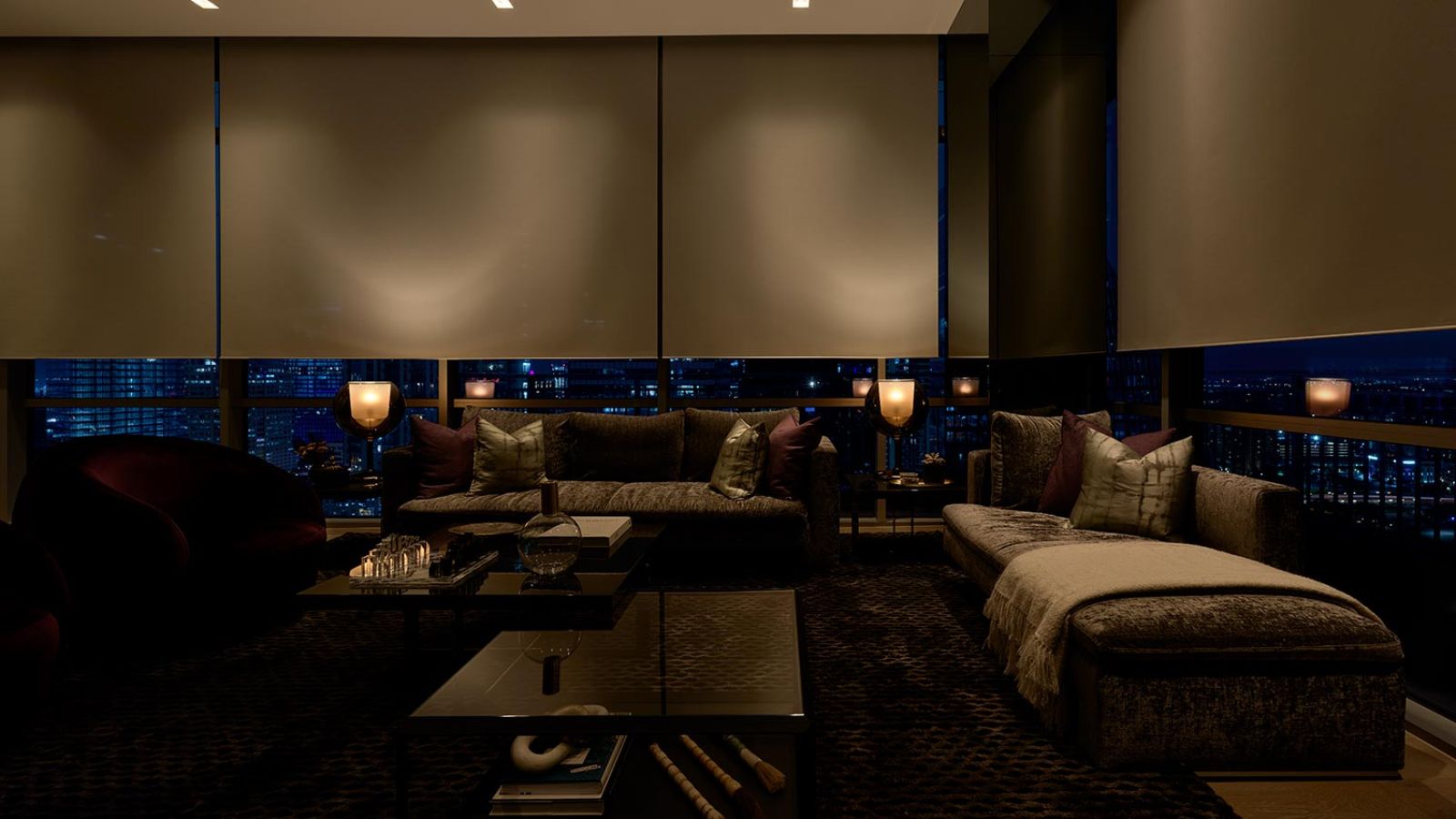By evening, lights warm and shades close to set a cozy, private mood. It all happens gradually and quietly, so it never feels like a shock as lights adjust and shades open.